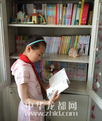 據(jù)了解,金株看得最多的是童話、文學類以及科普類書籍。金株有自己喜愛的作家,“楊紅櫻、曹文軒、伍美珍、郁雨君、楊鵬、沈石溪、黃蓓佳、湯素蘭、杰羅尼摩·斯蒂頓等等?!绷盒懔峤榻B,女兒剛上幼兒園的時候,自己給她買來《世界經(jīng)典童話》上下冊,每天給金株念。女兒5歲的時候,梁秀玲就鍛煉金株把講過的故事復述出來,慢慢地金株能把故事完整地復述。梁秀玲又帶她買了一些童話書鼓勵她自己看。“每到周末,我就會帶著金株去逛書店,每次都要買書。她比較喜歡按照作者的系列叢書來收藏,現(xiàn)在家里的兩個書架都沒放下她的書,有300多本藏書。”
