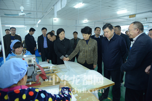 ????省委常委、宣傳部長趙素萍一行在市領導徐光等人的陪同下,到鄲城縣企業(yè)調研。記者 王亞輝 攝