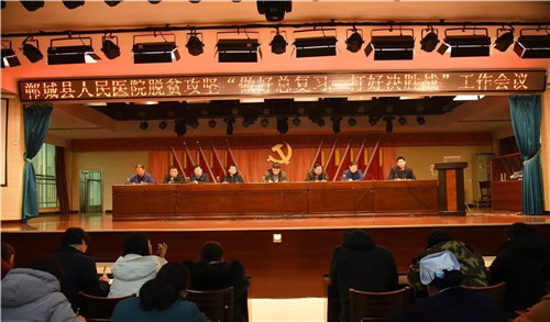 2月15日下午,鄲城縣人民醫(yī)院在門(mén)診五樓召開(kāi)脫貧攻堅(jiān)“做好總復(fù)習(xí),打好決勝戰(zhàn)”工作會(huì)議,傳達(dá)落實(shí)縣衛(wèi)計(jì)委扶貧工作會(huì)議精神,部署脫貧攻堅(jiān)工作。鄲城縣人民醫(yī)院院長(zhǎng)于健偕全體院領(lǐng)導(dǎo)班子出席會(huì)議,院黨委書(shū)記高飛主持。健康扶貧辦、醫(yī)保、財(cái)務(wù)、宣教、醫(yī)政、護(hù)理、藥事、醫(yī)療裝備等肩負(fù)健康扶貧任務(wù)的職能科室負(fù)責(zé)人、全體護(hù)士長(zhǎng)、3個(gè)幫扶村扶貧隊(duì)長(zhǎng)及全體扶貧隊(duì)員200余人參加會(huì)議。
