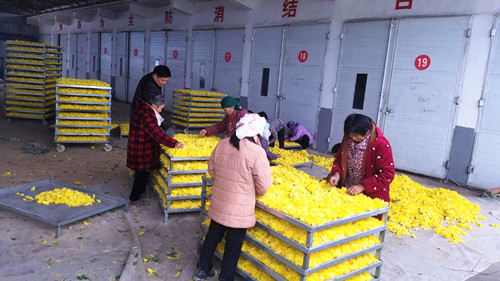 “我們提供優(yōu)質(zhì)種苗給種植戶,并且提供免費的技術(shù)指導(dǎo)以及技術(shù)培訓(xùn),群眾在種植金絲皇菊的過程中遇見問題都可以隨時來咨詢;在金絲皇菊成熟后我們會對老百姓所種植的菊花進行保底收購,保證種植戶的利潤不受影響?!睋?jù)了解,目前僅張辛行政村就有菊花種植合作社3個,種植金絲皇菊、雪菊、貢菊等各類菊花近千畝,帶動全村貧困人員由原來的303戶、998人下降至現(xiàn)在的7戶、18人,全村人靠種植菊花實現(xiàn)創(chuàng)收致富。