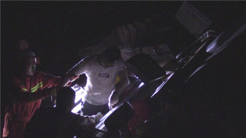當(dāng)夜,消防指戰(zhàn)員接到調(diào)派命令后迅速趕往事故現(xiàn)場(chǎng)。指揮員觀察了解得知,側(cè)翻的是一輛重型推土車,由于作業(yè)區(qū)地面不平,司機(jī)在倒車時(shí)車輛發(fā)生側(cè)翻,欲打開(kāi)車門(mén)跳車未果,左臂反而被車輛駕駛室一側(cè)死死壓在地面上,無(wú)法動(dòng)彈。當(dāng)時(shí)工地上沒(méi)有同事,周邊也沒(méi)有行人,呼救無(wú)應(yīng)后,司機(jī)忍著巨烈疼痛摸到手機(jī)電話求救。