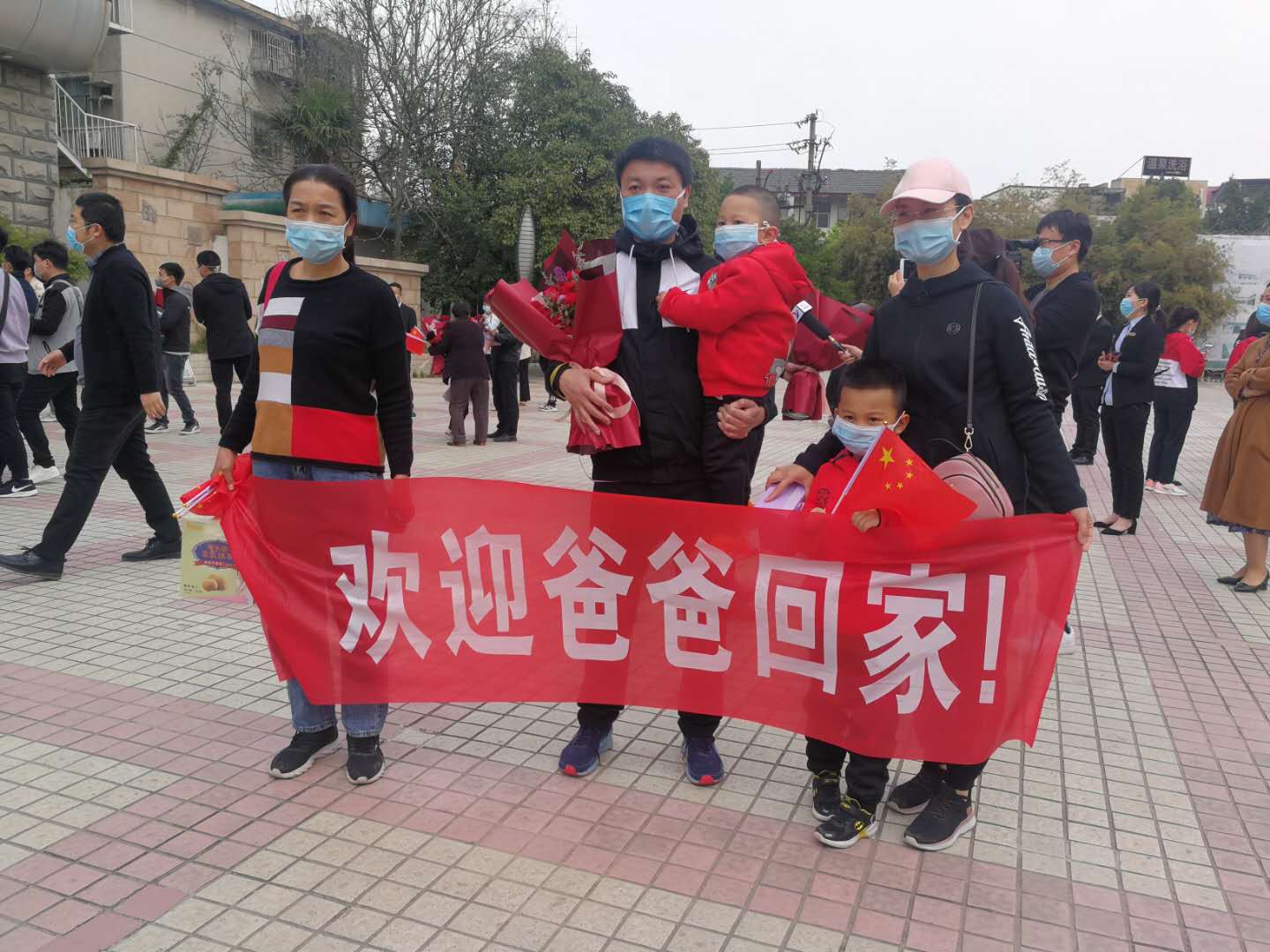 “歡迎爸爸回家”、“歡迎回家” 親人們、同事們、朋友們和自發(fā)趕來(lái)的市民早早守候在隔離休整點(diǎn)門(mén)口,等著迎接英雄回家。一束束鮮花、一條條橫幅都在向凱旋而來(lái)的勇士們表達(dá)著敬意和思念。