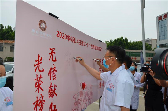 6月14日是第17個(gè)“世界獻(xiàn)血者日”,今年的主題是“安全血液、拯救生命”。為號(hào)召更多的人加入到無(wú)償獻(xiàn)血的隊(duì)伍,6月11日上午,市中醫(yī)院開(kāi)展“第17個(gè)世界獻(xiàn)血日”無(wú)償獻(xiàn)血活動(dòng)。市政協(xié)副主席、市中醫(yī)院院長(zhǎng)程維明,醫(yī)院黨委書(shū)記劉廣明,副院長(zhǎng)魯恒心、 史衛(wèi)東,工會(huì)主席孫俊,市中心血站站長(zhǎng)王峰、副站長(zhǎng)申飛等領(lǐng)導(dǎo)及來(lái)自醫(yī)療、護(hù)理、門(mén)診、行政后勤人員300余人參加活動(dòng)。