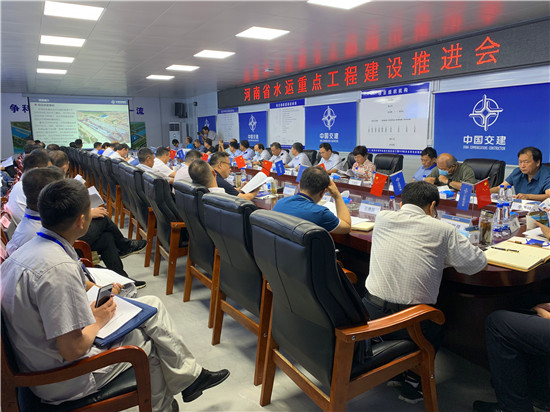 參觀結(jié)束后,與會(huì)人員在沈丘項(xiàng)目部會(huì)議室召開(kāi)了全省水運(yùn)重點(diǎn)工程復(fù)工復(fù)產(chǎn)推進(jìn)會(huì)議。會(huì)議傳達(dá)了近期河南省有關(guān)安全、防汛、“六比一創(chuàng)”和節(jié)能減排競(jìng)賽等各項(xiàng)工作部署以及全省交通運(yùn)輸工作半年會(huì)議精神。