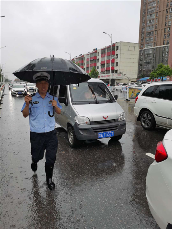大雨滂沱,交通擁堵。7月22日,針對(duì)市區(qū)降大雨且部分路段出現(xiàn)嚴(yán)重積水的情況,交警及時(shí)啟動(dòng)惡劣天氣應(yīng)急預(yù)案,迅速投入到工作中。