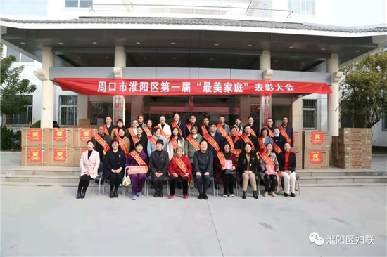 會議宣讀了《淮陽區(qū)婦聯(lián)關(guān)于表彰第一屆“最美家庭”的決定》;與會領(lǐng)導(dǎo)為最美家庭進(jìn)行現(xiàn)場頒獎、頒發(fā)證書和門牌;兩戶“最美家庭”代表分享了家庭故事。