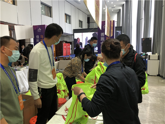 11月12日上午,記者在位于八一大道與文昌大道交叉口的佳利地產(chǎn)營(yíng)銷中心門(mén)口看到,今年由于疫情管控的需要,參賽選手領(lǐng)取裝備前需要先展示自己的健康碼,并配合醫(yī)護(hù)人員測(cè)量體溫,進(jìn)入現(xiàn)場(chǎng)還需戴口罩。在一樓活動(dòng)大廳,來(lái)自周口馬拉松協(xié)會(huì)的志愿者們先為選手確認(rèn)身份信息,再根據(jù)選手的身材、體型為其發(fā)放含有不同型號(hào)運(yùn)動(dòng)衣的背包。最終,每個(gè)參賽選手都會(huì)領(lǐng)到一個(gè)熒光綠色的小背包,里面裝有號(hào)碼布、參賽長(zhǎng)袖T恤、存衣包、手套、一次性風(fēng)雨衣和一本官方手冊(cè)等。