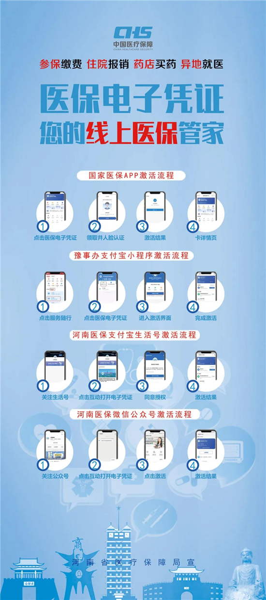 醫(yī)保電子憑證不依托實(shí)體卡,領(lǐng)取方式簡(jiǎn)單,參保人員可以直接通過(guò)國(guó)家醫(yī)保App或者通過(guò)微信、支付寶,以及經(jīng)由國(guó)家醫(yī)保局和河南省醫(yī)療保障局認(rèn)證授權(quán)的第三方渠道,自助進(jìn)行認(rèn)證后激活使用,不需要到服務(wù)大廳領(lǐng)取和激活。
