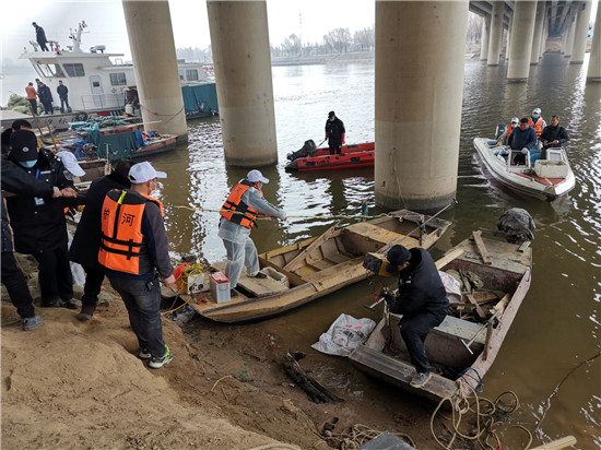 1月20日上午9時許,沙潁河周口中州路橋頭,多艘快艇和漁政執(zhí)法船集結完畢,來自市公安局水上分局、市農業(yè)農村局漁政執(zhí)法以及孝慈文化促進會的志愿者、川匯區(qū)民間河長等40余人分乘執(zhí)法船,開展聲勢浩蕩的聯合執(zhí)法查處行動。