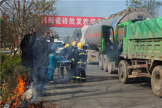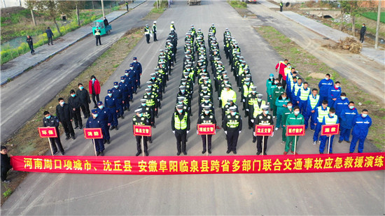 為進(jìn)一步健全完善涉及危險品運(yùn)輸車事故應(yīng)急處置和搶險救援機(jī)制,加強(qiáng)省際國省道安全管控,提高突發(fā)事件應(yīng)急處置和救援能力,經(jīng)共同研究決定,3月3日上午,河南省公安廳交警總隊組織周口市公安局交通管理支隊和安徽阜陽市公安局交通管理支隊聯(lián)合兩地交警、環(huán)保、消防、施救、120急救中心等多部門在兩市交界處舉行道路交通事故應(yīng)急救援聯(lián)合演練,演練內(nèi)容包括接處警、交通管制、環(huán)境監(jiān)測、營救被困人員、處置?;?、事故現(xiàn)場勘察、事故現(xiàn)場清理等內(nèi)容。