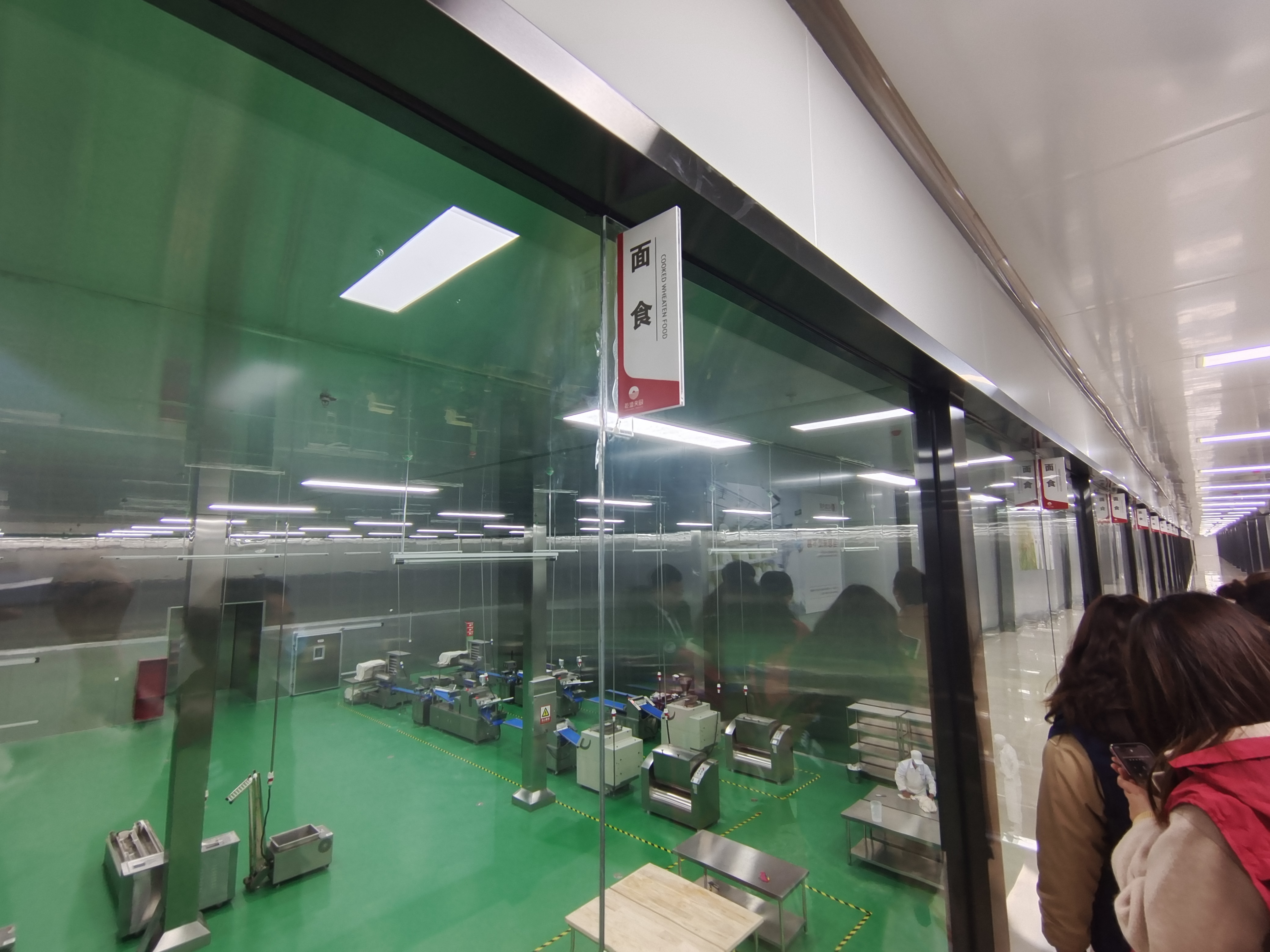 在位于川匯區(qū)女媧路88號的乾盛央廚,直播團隊用圖文形式實時現場呈現午餐制作整體環(huán)境。隔著參觀走廊上的玻璃,全線開機一小時能出12000個無添加饅頭的面食車間,從生米到熟飯全自動機械化制作的米飯車間,全程紫外線消毒、菜品全清真的烹飪車間,流水線上分盒分箱并與物流區(qū)無縫銜接的分餐生產線,這些在主播與乾盛央廚工作人員的一問一答中呈現在觀看直播的家長朋友們面前?!拔覀儾粌H做飯,餐具也由我們提供,餐具是PPP材料,耐高溫,安全無毒,筷子、勺子是不銹鋼的?!惫ぷ魅藛T介紹。