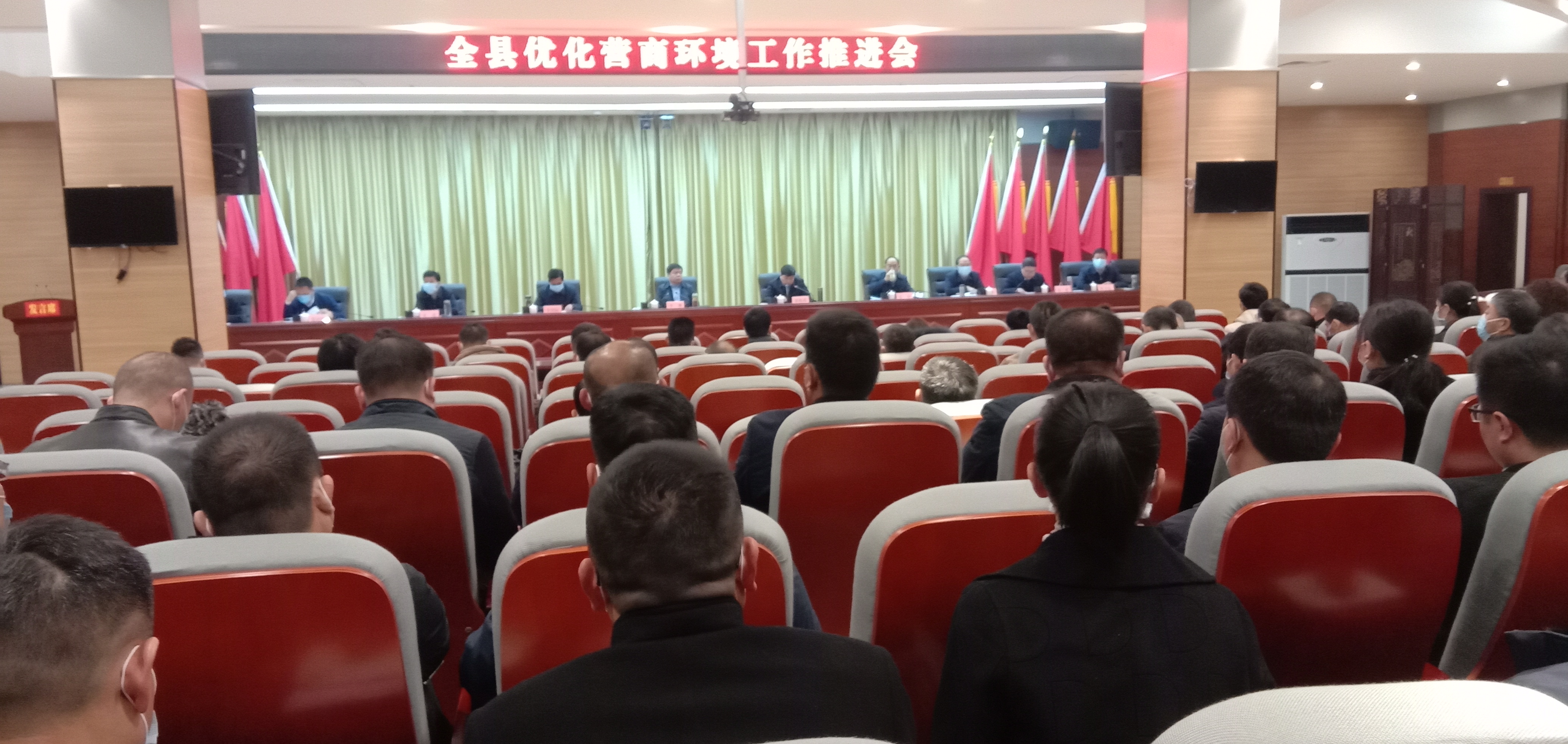 會(huì)上,縣委副書記、縣長郭俊濤就全縣優(yōu)化營商環(huán)境工作、新冠肺炎疫情防控工作進(jìn)行安排部署??h委常委、縣紀(jì)委書記、監(jiān)委主任金溪通報(bào)了該縣2020年?duì)I商環(huán)境評(píng)價(jià)報(bào)告,安排部署2021年度營商環(huán)境評(píng)價(jià)準(zhǔn)備工作。