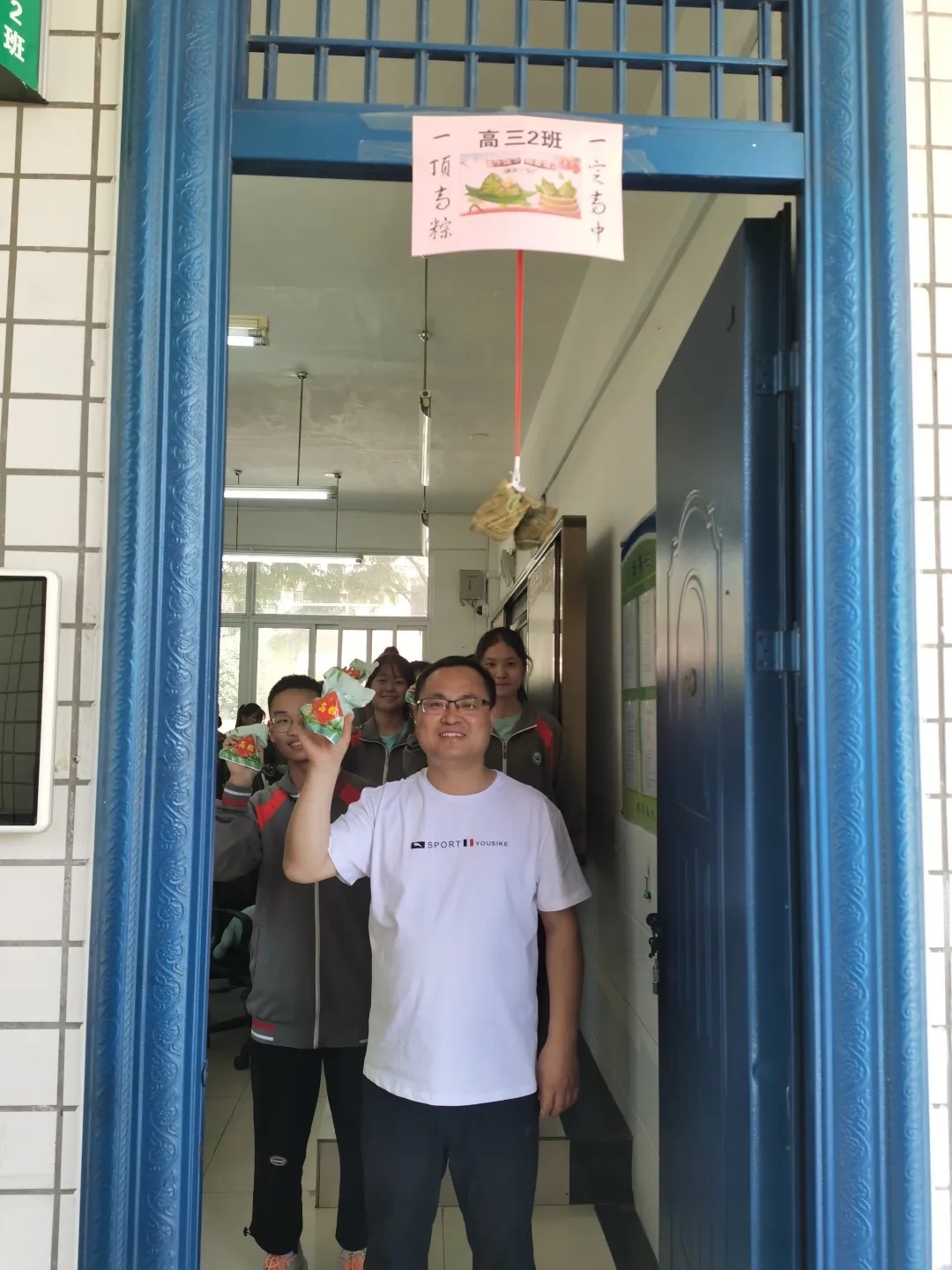 小小粽子,深深情誼。同學(xué)們接過粽子,滿懷感恩,臉上洋溢著喜悅的笑容。老師們還將粽子掛在教室門口,同學(xué)們離開教室時(shí)輕快跳起,用頭頂粽子,寓意“一定高中”,中午就餐時(shí)間,熱氣騰騰的粽子讓同學(xué)們通過舌尖上的美味感知傳統(tǒng)文化魅力,在愉悅的氛圍中煥發(fā)昂揚(yáng)斗志,實(shí)踐青春誓言。