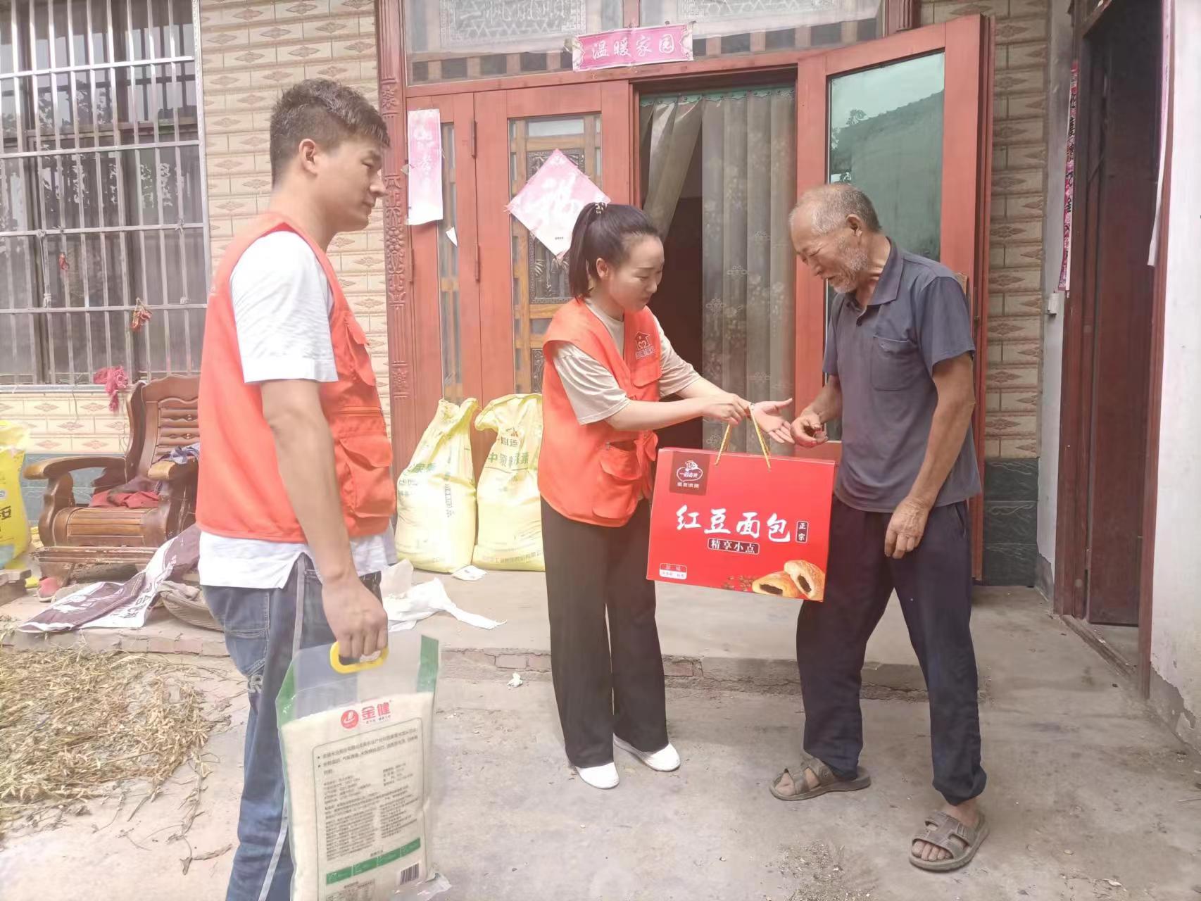 義演活動(dòng)結(jié)束后,志愿者們帶著大米、面包等物品分組前往西營(yíng)行政村、魏寨行政村、支亭行政村看望行動(dòng)不便的老人。