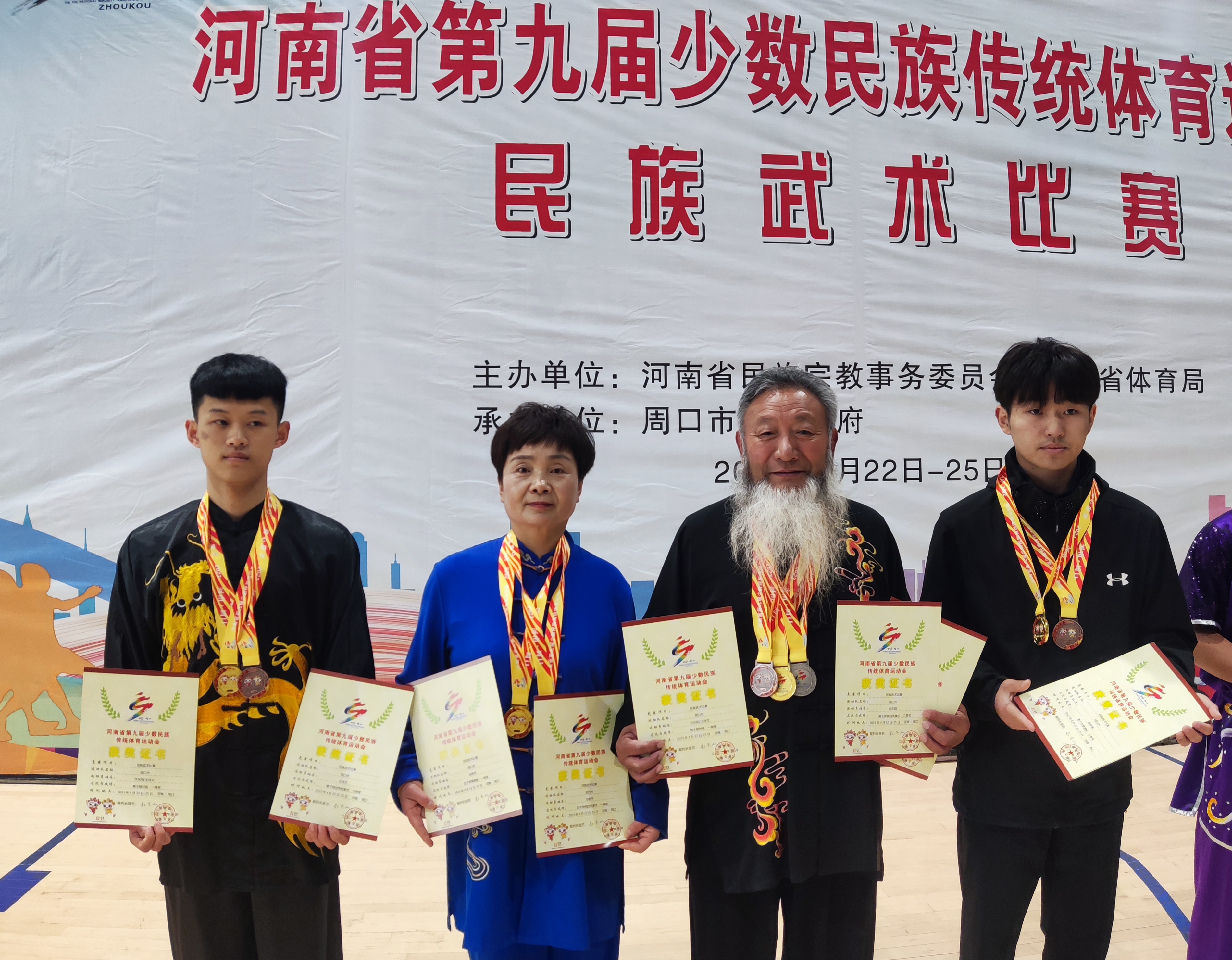 據(jù)悉,在本屆民族運(yùn)動(dòng)會(huì)民族武術(shù)項(xiàng)目中,產(chǎn)生13項(xiàng)金牌,24項(xiàng)銀牌,29項(xiàng)銅牌。周口隊(duì)收獲4項(xiàng)金牌、1項(xiàng)銀牌、3項(xiàng)銅牌,取得歷史最好成績(jī)。其中,蘇俊瑞獲得男子傳統(tǒng)一類拳術(shù)金牌,馬艷平獲得女子傳統(tǒng)四類拳術(shù)金牌、女子組單器械金牌,許東陽、王詩文獲得男子組對(duì)練金牌。許東陽還獲得男子傳統(tǒng)四類拳術(shù)銀牌、男子組單器械銅牌。王詩文獲得男子其他類拳術(shù)銅牌。蘇俊瑞獲男子組單器械銅牌。②2