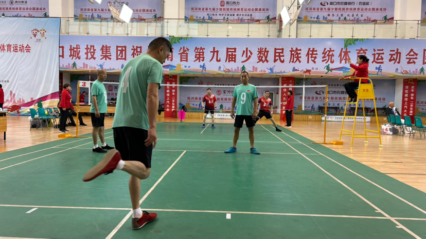扣殺、挑球、倒鉤、跳踢……在第九屆全省民族運(yùn)動(dòng)會(huì)毽球比賽的熱身場上,運(yùn)動(dòng)員們熟練地踢著毽子,小小毽球在球網(wǎng)上凌空穿梭,上下翻飛。周口毽球代表隊(duì)運(yùn)動(dòng)員高紅山腳蹬舒適軟底毽球鞋,在隊(duì)友們的默契配合下,毽球上下翻轉(zhuǎn),不時(shí)甩出一道道完美的拋物線。