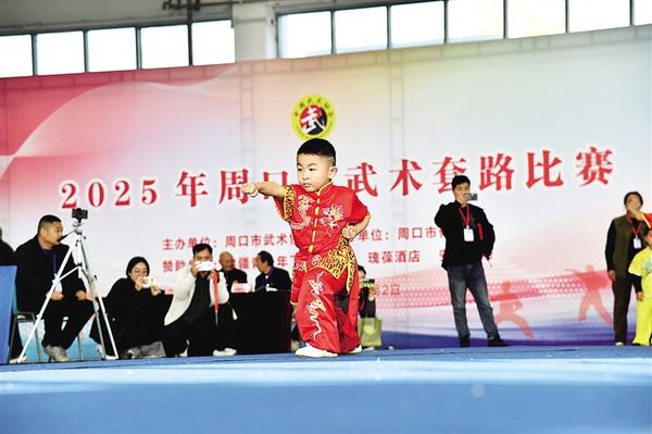 11月1日上午,小朋友展示長拳。當(dāng)日,由周口市武術(shù)協(xié)會主辦、周口市體育中心協(xié)辦的“2025年周口市武術(shù)套路比賽”在周口市體育中心開賽,來自全市不同武術(shù)門派和拳種的43支代表隊(duì)的千名武術(shù)愛好者參與套路、器械等比賽,他們的扎實(shí)功底和不同風(fēng)格的拳術(shù)展示贏得陣陣喝彩,展示了我市武術(shù)發(fā)展的成果。記者 梁照曾 攝