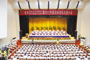 項(xiàng)城市委常委、組織部長郭峰宣讀了《項(xiàng)城市考核工作委員會(huì)關(guān)于2011年度科級(jí)領(lǐng)導(dǎo)班子和科級(jí)干部落實(shí)科學(xué)發(fā)展觀考核評(píng)價(jià)結(jié)果的通報(bào)》和《項(xiàng)城市委、市政府關(guān)于表彰2011年度落實(shí)科學(xué)發(fā)展觀優(yōu)秀科級(jí)領(lǐng)導(dǎo)班子和優(yōu)秀科級(jí)干部的決定》。