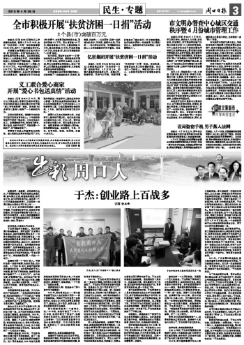 回顧自己的創(chuàng)業(yè)生涯,于杰認(rèn)為無(wú)論做人還是做事,一定要自信?!白鳛橐粋€(gè)周口人,我感到很驕傲很自豪,周口是一個(gè)人杰地靈的地方,有很深厚的文化底蘊(yùn),五千年的周口文化讓我非常自信。只要有自信、有理想、能堅(jiān)持就沒(méi)有完成不了的目標(biāo),周口人到哪都不差,到哪都能成功!”于杰如是說(shuō)。