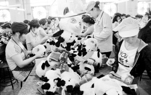 廣西各地就業(yè)呈現(xiàn)“鳳還巢” 廣西靈山縣婦女在生產(chǎn)外銷歐美的兒童玩具(4月29日攝)。近年來,廣西各地婦女就業(yè)呈現(xiàn)“鳳還巢”局面,不少在廣東、福建、浙江等地打工的人員,利用所學(xué)技能回鄉(xiāng)創(chuàng)業(yè)。抓住這一契機(jī),廣西投入十幾億元建設(shè)200多個(gè)“巾幗科技示范基地”,為廣大婦女創(chuàng)業(yè)、就業(yè)搭建平臺(tái)。新華社發(fā)