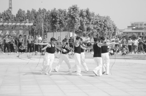 為進一步推動全民健身活動的深入開展,項城市啟動了“全民健身月”活動,讓市民積極投身到全民健身行列中,努力使體育鍛煉經常化、個人健身生活化。圖為5月18日項城市鞭陀協(xié)會的會員正在進行鞭陀健身展演。