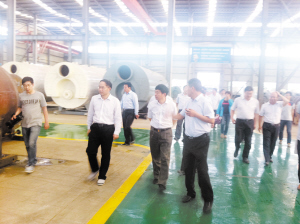 考察團(tuán)在太康四通鍋爐公司生產(chǎn)車間參觀考察。