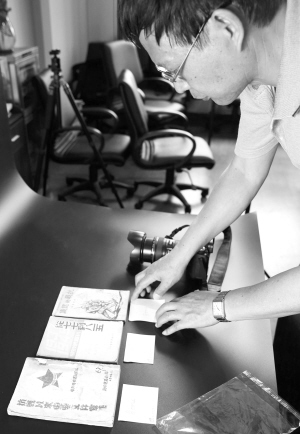 5月26日,上海群眾藝術(shù)館的工作人員在為市民提供的抗戰(zhàn)題材收藏品進(jìn)行造冊登記。