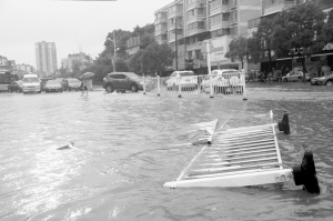 廣西、江西等地遭遇持續(xù)強(qiáng)降雨 中央氣象臺繼續(xù)發(fā)布暴雨藍(lán)色預(yù)警      6月14日,在江西宜春明月北路,路面交通護(hù)欄被洪水沖倒。6月13日起,廣西、江西等地遭遇大范圍強(qiáng)降雨。中央氣象臺14日10時(shí)繼續(xù)發(fā)布暴雨藍(lán)色預(yù)警,預(yù)計(jì)14日14時(shí)至15日14時(shí),湖南東北部和中部、湖北東南部、安徽南部、江西北部、福建西北部、浙江大部、上海以及西藏東南部、云南西部和東南部、廣西北部、廣東中北部、海南南部等地的部分地區(qū)有大雨或暴雨。新華社發(fā)