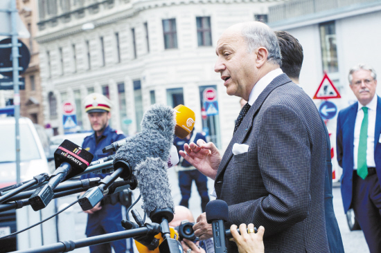 新一輪伊核問(wèn)題談判在維也納舉行   6月27日,在奧地利首都維也納,法國(guó)外交部長(zhǎng)法比尤斯在舉行新一輪伊核問(wèn)題談判的柯堡宮殿酒店外接受記者采訪。當(dāng)日,伊朗核問(wèn)題六國(guó)、歐盟與伊朗在奧地利首都維也納柯堡宮殿酒店展開(kāi)新一輪磋商。