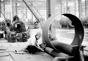近年來,太康縣裝備制造園區(qū)被省工業(yè)和信息化廳評(píng)為特色裝備(工業(yè)鍋爐)制造園區(qū),成為中部地區(qū)最大的鍋爐壓力容器生產(chǎn)基地。全縣現(xiàn)有鍋爐壓力容器制造企業(yè)14家,其中A級(jí)鍋爐企業(yè)5家,年生產(chǎn)能力2.65萬(wàn)蒸噸以上。圖為該縣四通鍋爐廠生產(chǎn)車間一角。(記者 沈湛 攝)