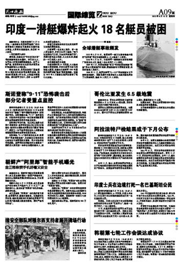 印度一潛艇爆炸起火18名艇員被困